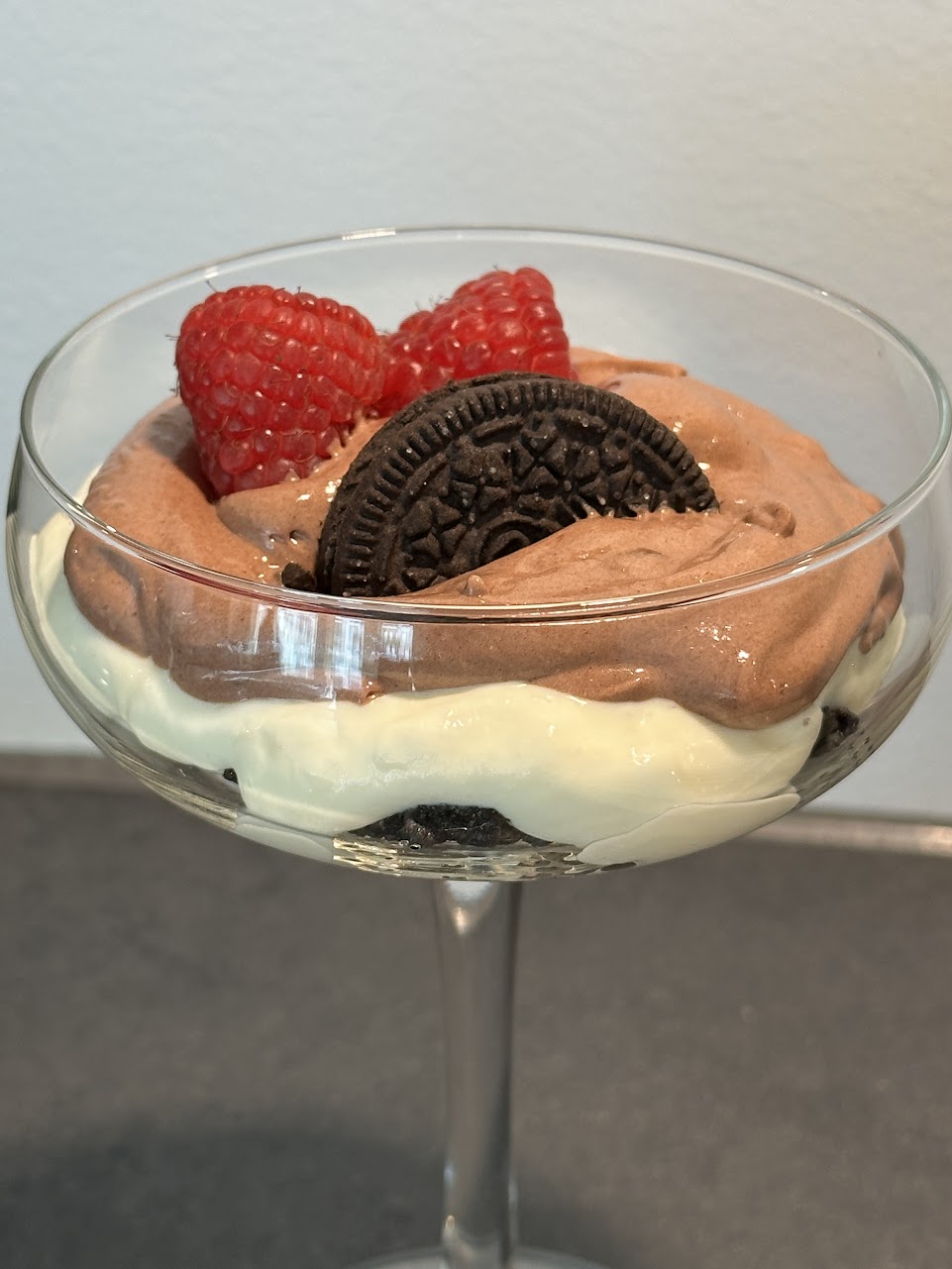 Oreokake i glass er en helt himmelsk søtsak som kombinerer den deilige smaken av Oreo-kjeks med en skikkelig sjokoladeopplevelse. Her får du lag med knuste Oreo-kjeks, deilig sjokoladepudding og luftig krem, alt toppet med ekstra Oreo-smuler for en ekstra godbit.